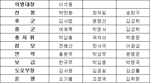 1907년 8월 27일 임실군 성수면에 있는 상이암에서 이미 모집된 의병들과 함께 회의를 가지고 의병의 명칭을 ‘의병창의동맹’이라 하였다. 이 때 구성된 의병의 조직은 다음과 같다.