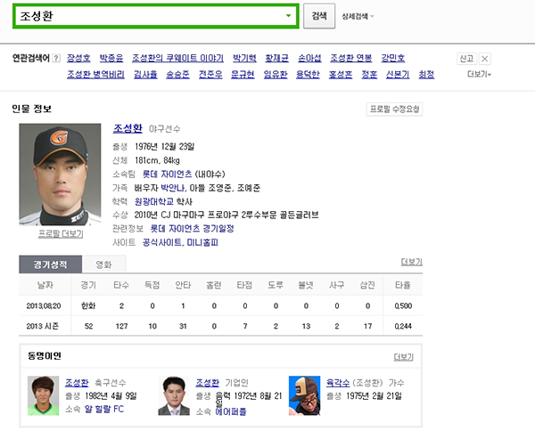 다음은 인터넷 검색창에 ‘조성환’으로 인물 검색을 한 결과이다. 물음에 답하시오.