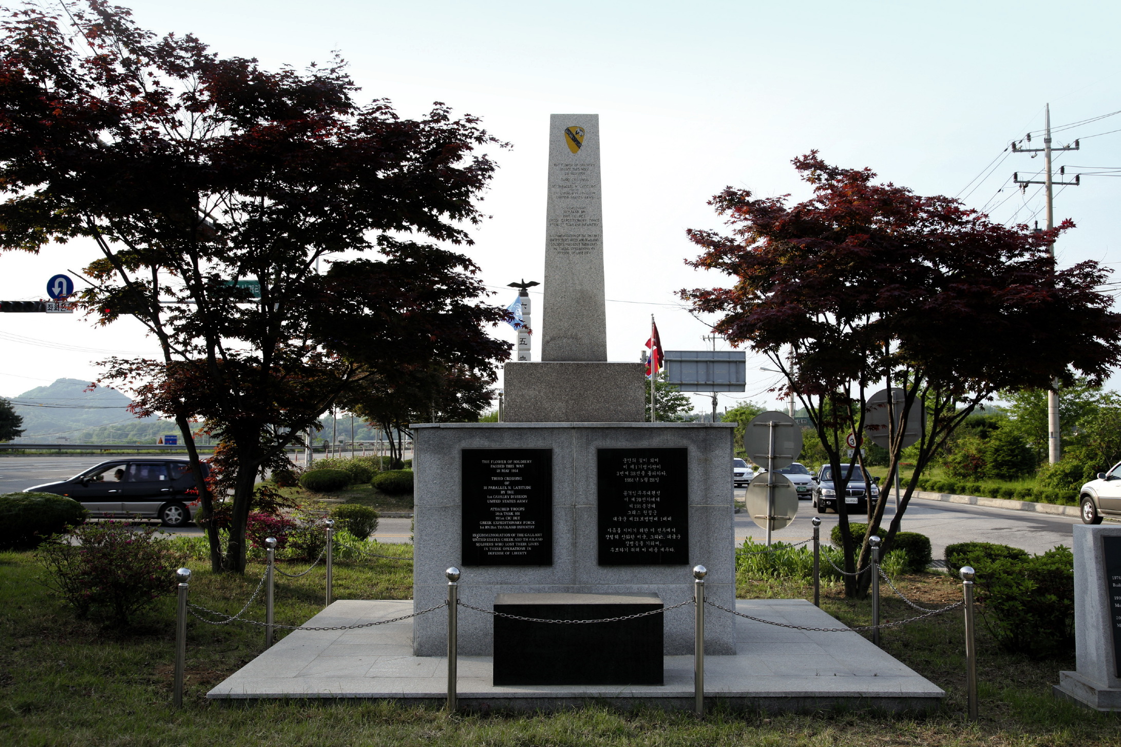 | 위치 고증 | 『한국전쟁』중권에 의하면, 전쟁 중공군 춘계공세시 미 제1기병사단이 유엔군의 캔사스선 확보작전의 일환으로 1951년 5월 28일 초성리에서 38선을 돌파하여 중공군을 추격하였음이 확인된다. |