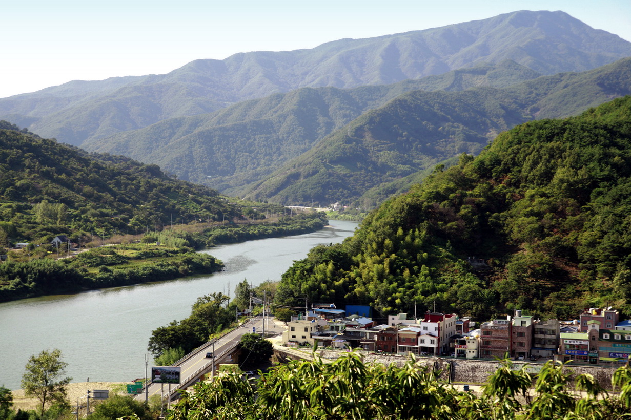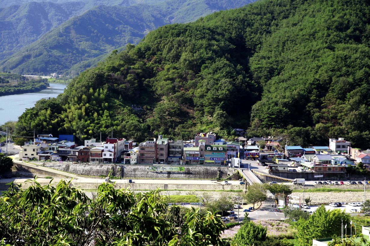 섬진강 너머에서 바라본 옛 화개장터
