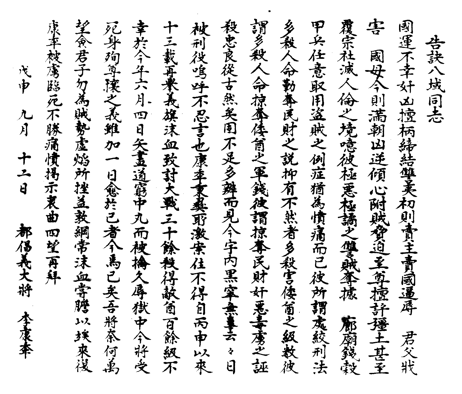 이강년 격문 - 고결팔역동지