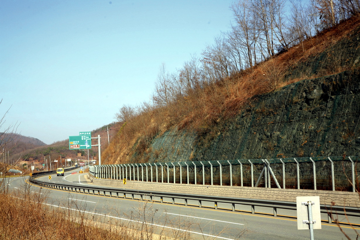 아화리 도로와 주변 고지