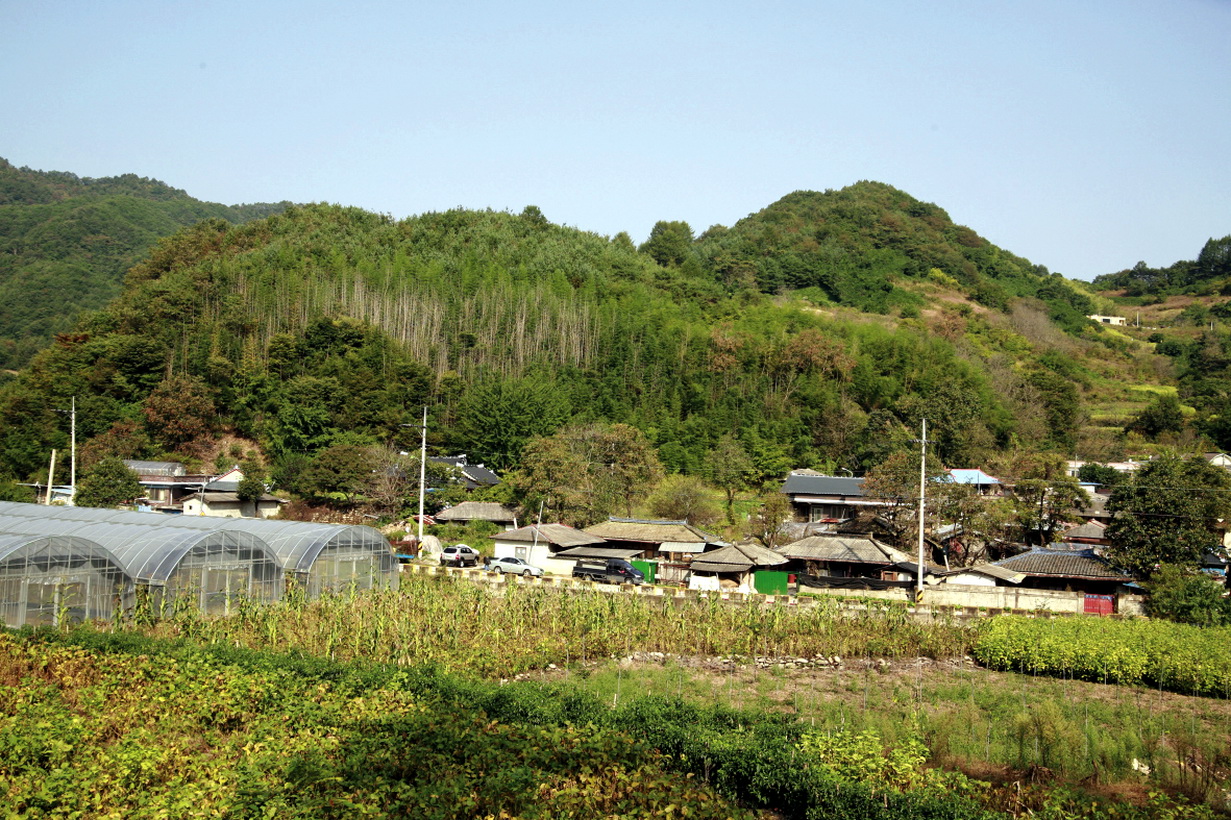 사암리 마을과 오른쪽 고지 능선