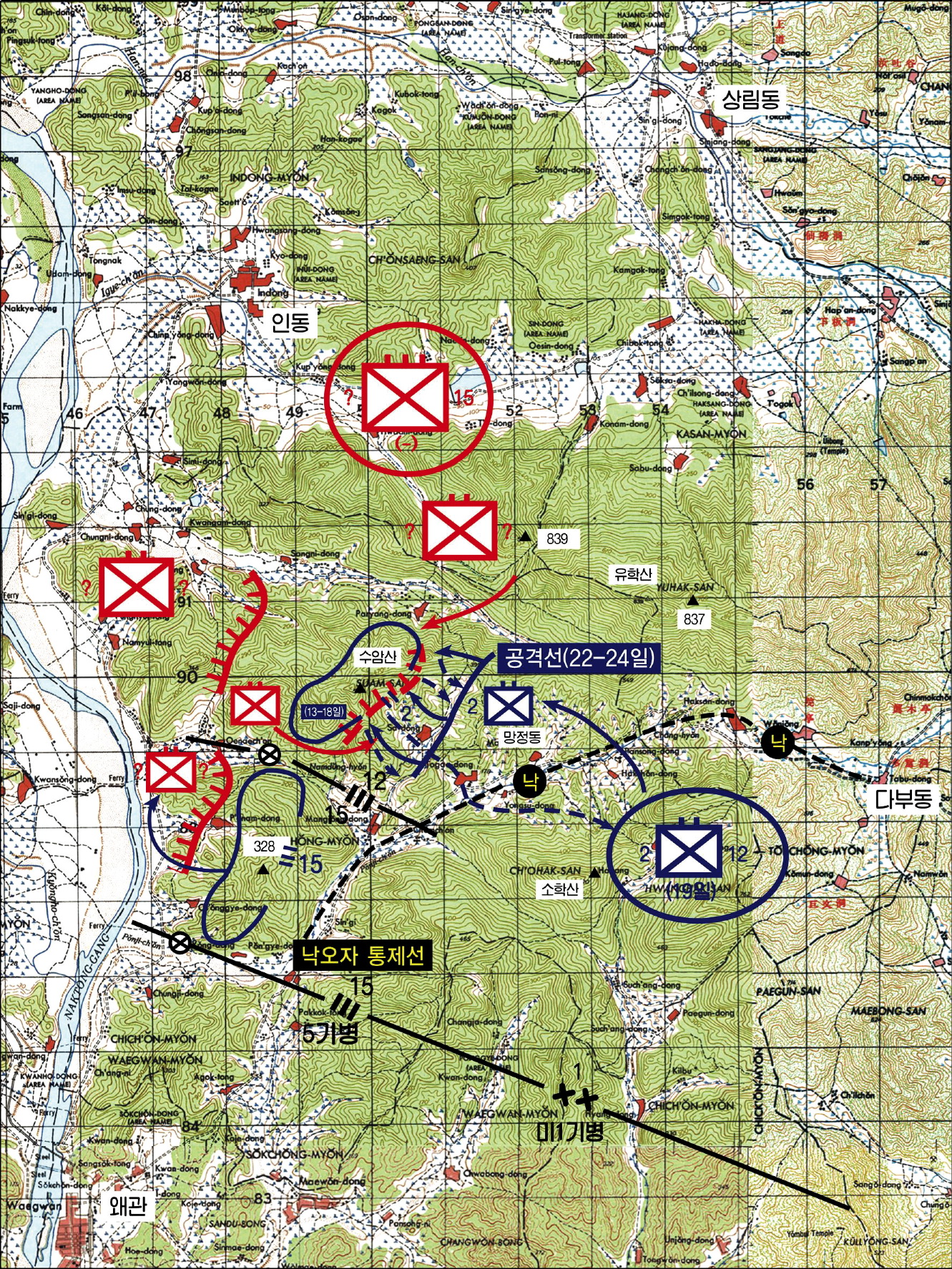 수암산 전투상황, 1950. 8. 19.~24『.( 6·25전쟁사』5, 155쪽)