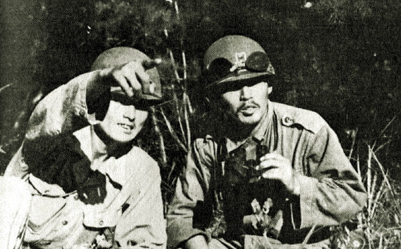 수암산에서 적정을 살피고 있는 제12연대장 박기병 대령과 제2대대장 조성래 소령