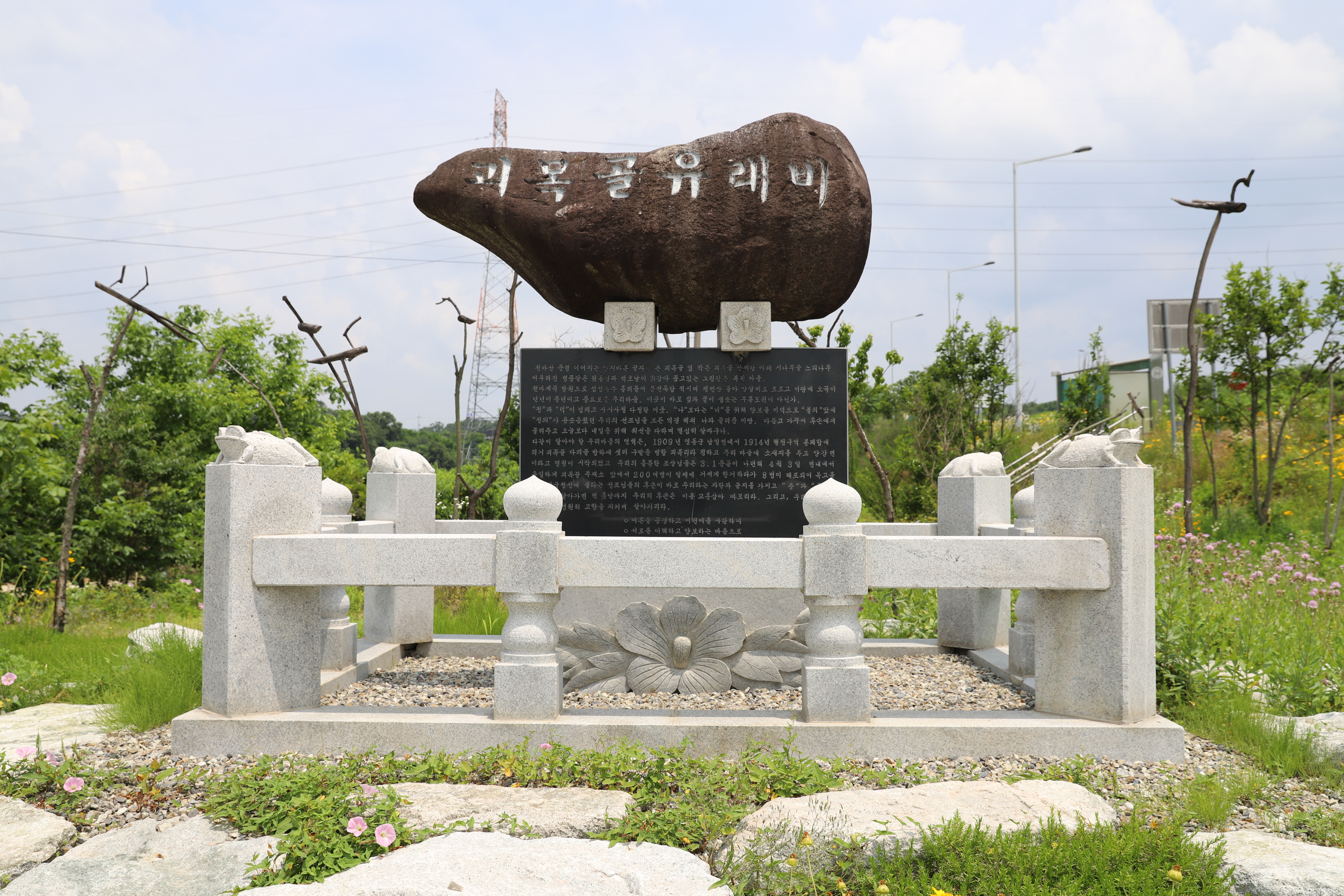 | 위치 고증 | 『조선독립운동』Ⅰ권과「박중옥 등 2인 판결문」에 관련 사실이 기록되어 있다. 현지조사에서 마을주민 황봉수(괴목리 거주, 77세)의 증언을 통해 위치를 고증 받았다. 괴목골 유래비에 3·1운동과 관련 내용이 새겨져 있다. 『근세한국오만분지일지형도』에 지명 ‘槐木里’와 면사무소가 기록돼 있으나 경찰주재소는 표시돼 있지 않다. |