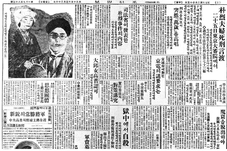 박열 의거 보도기사(『조선일보』, 1925년 11월 25일)