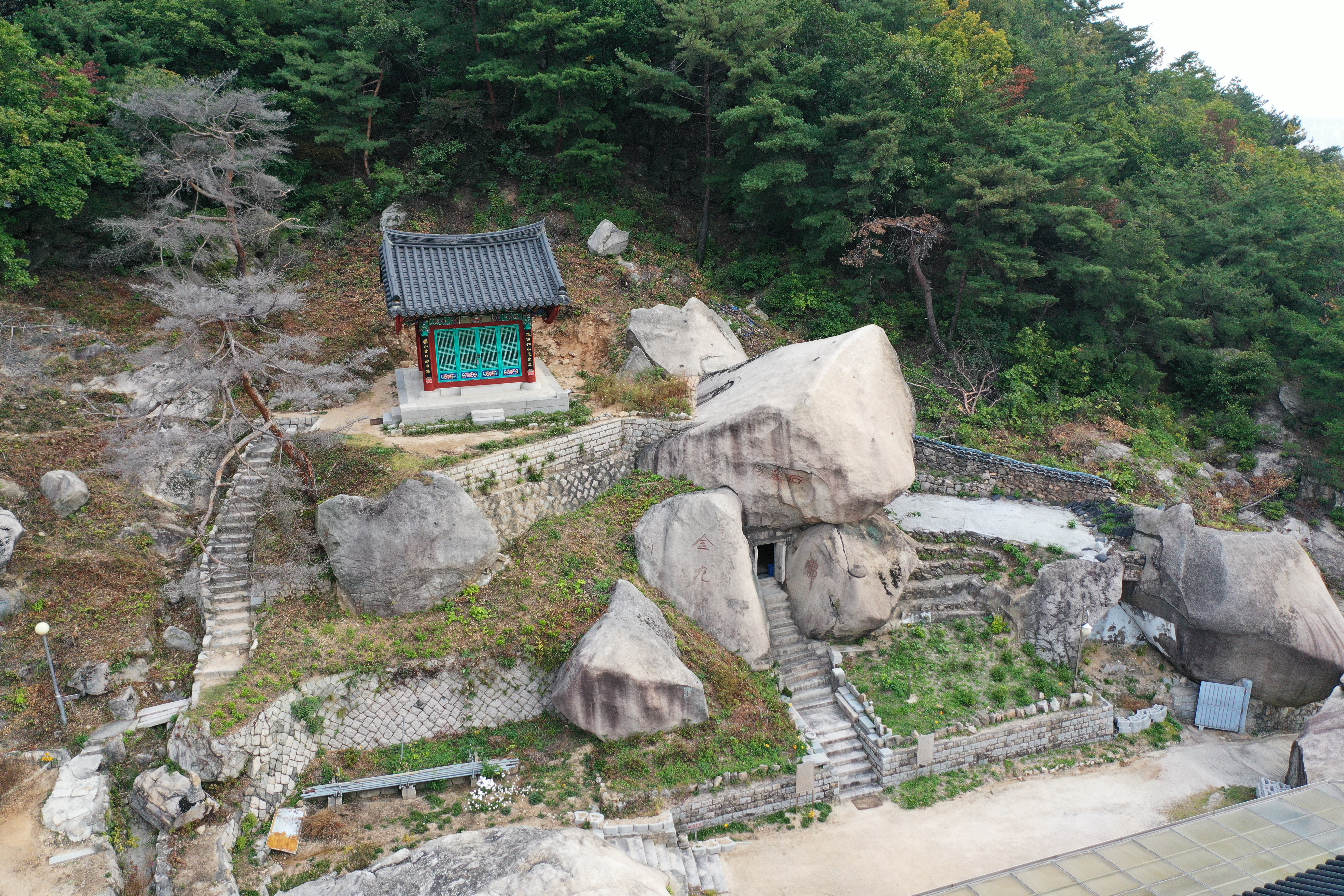 | 상태 | 석굴암 입구에 안내판이 있으며, “石窟庵”, “佛”, “金九”가 바위에 새겨져 육안으로 확인될 만큼 상태가 양호하다. |