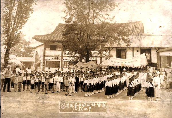1931년 10월 9일 청남학교의 운동회 모습 1930년대 청남학교 교사