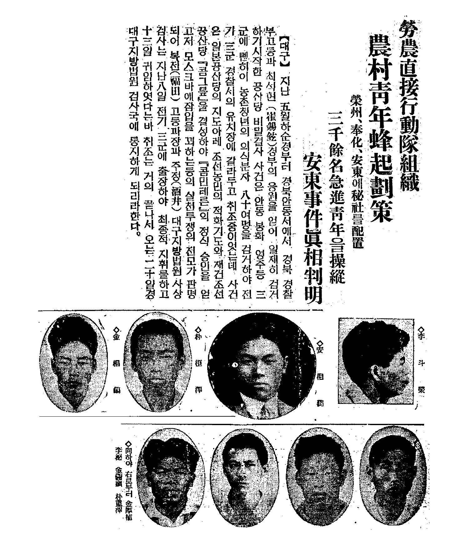 영주적농재건투쟁위원회 관련기사(『동아일보』, 1933년 7월 15일)