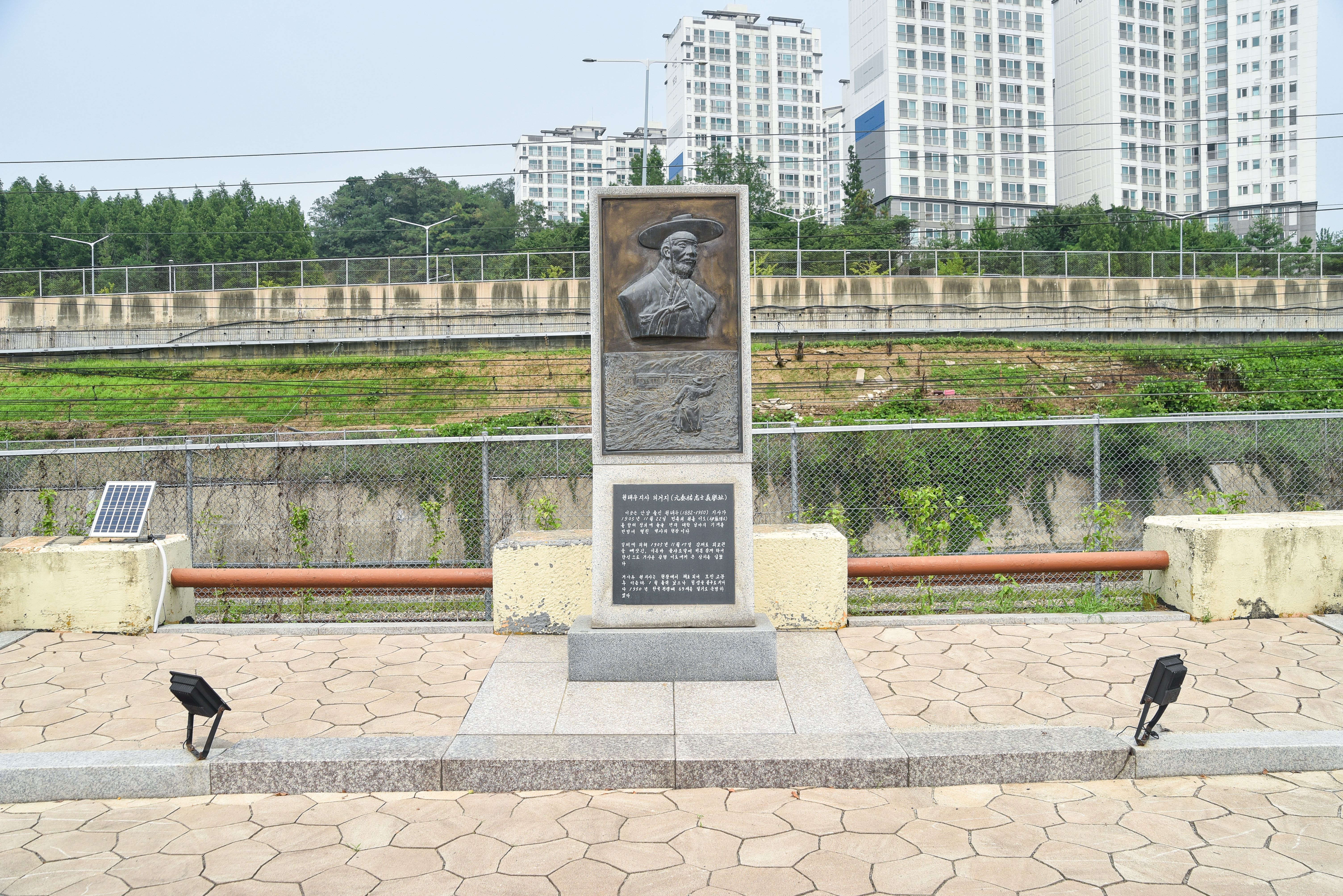 | 위치 고증 | 『일로전쟁사진화보』 39권에 실린 일본인 화가 기무라 고타로[木村光太郞]의 투석 기록화를 보면, 당시 원태우로 추정되는 인물이 열차에 돌을 던지는 장면을 그려놓은 화보가 실려있다. 또한 『대한매일신보』1905년 11월 24·25일자 기사에 안양역에 투석한 기록이 나와있고, 『駐韓日本公使館記錄』에 안양역 서북방 약 800미터 안양부근에서 북행열차가 오는 방향에서 돌을 던진 인물이 원태근(원태우 이명)임이 확인됨으로 투석지를 비정할 수 있다. |