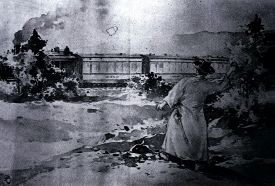 원태우, 이토 히로부미 탑승열차 투석 기록화