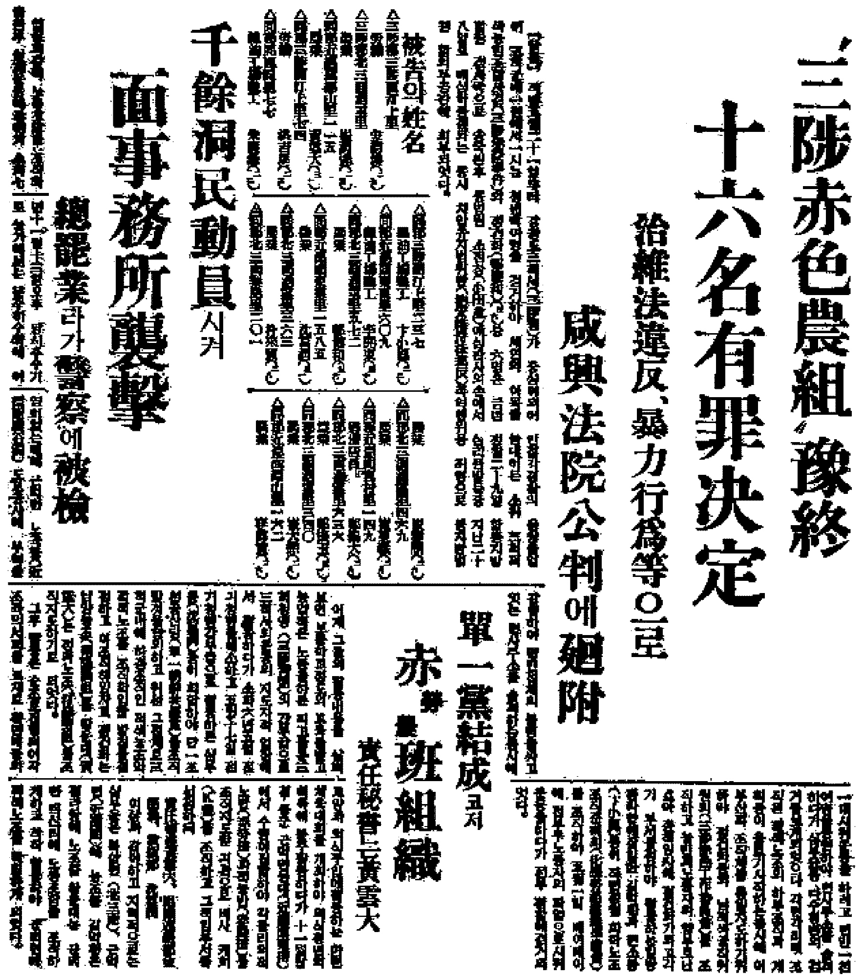 삼척적색농민조합 공판기사(『동아일보』, 1935년 10월 27일)