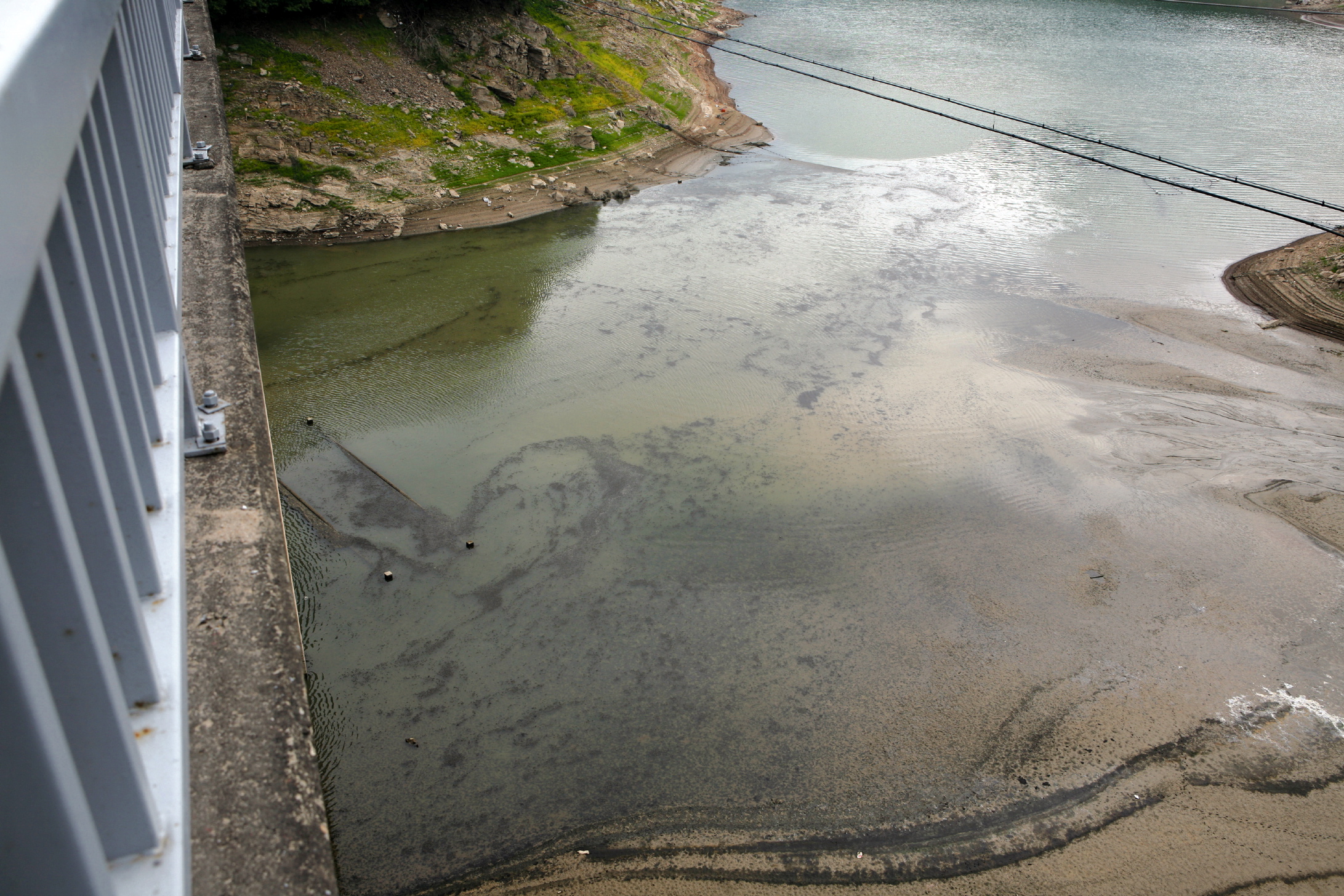 물속에 잠겨있는 당시 높은 다리
