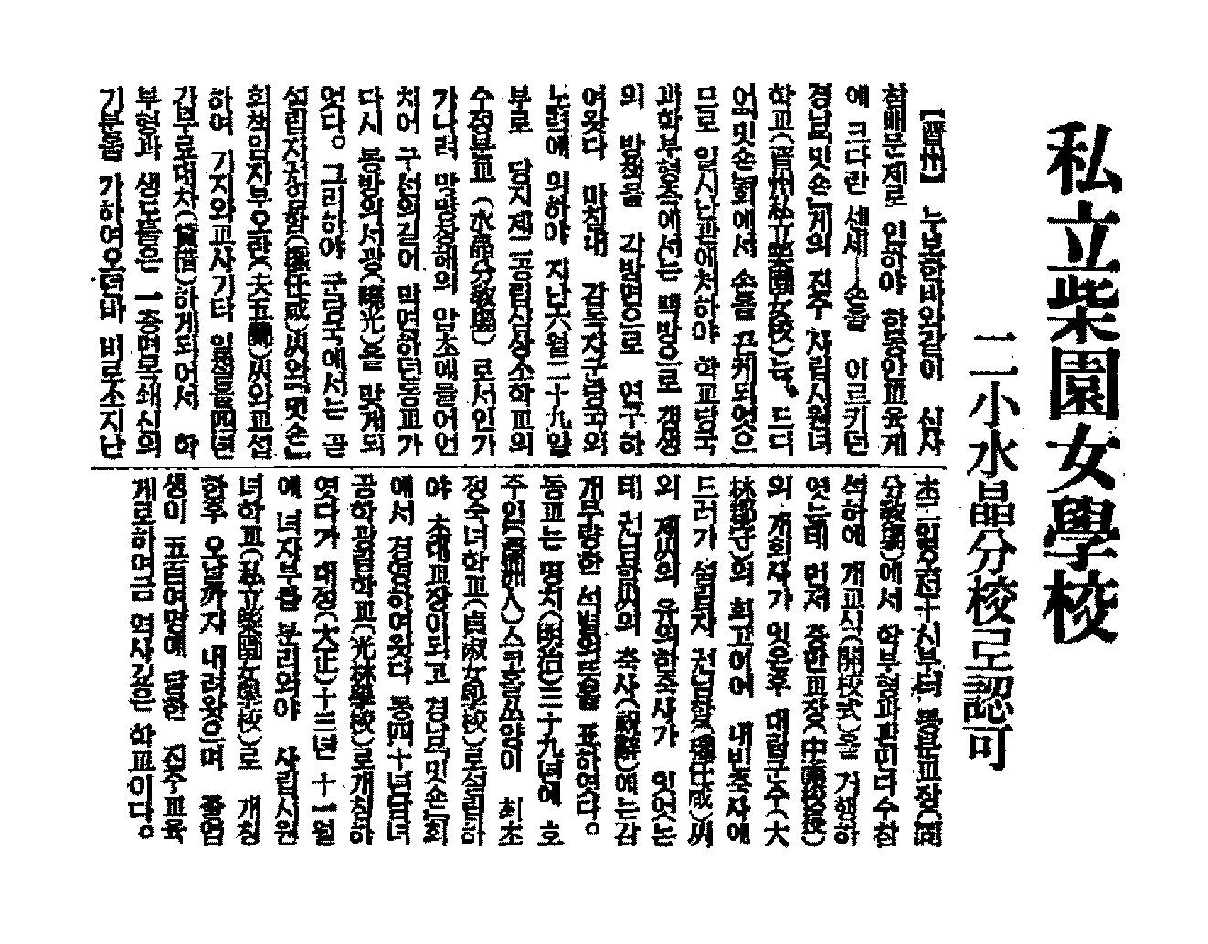 시원여학교 폐교 관련기사(『동아일보』, 1939년 9월 5일)