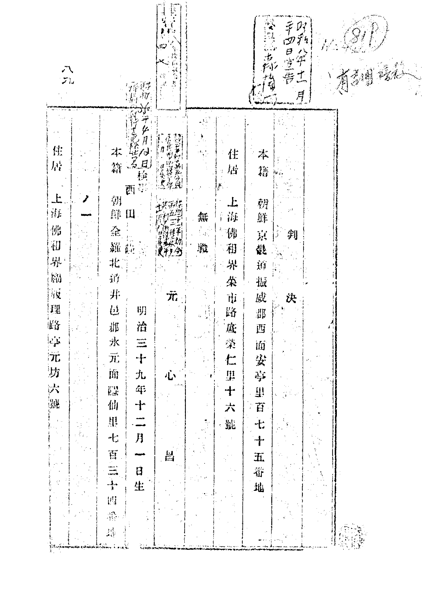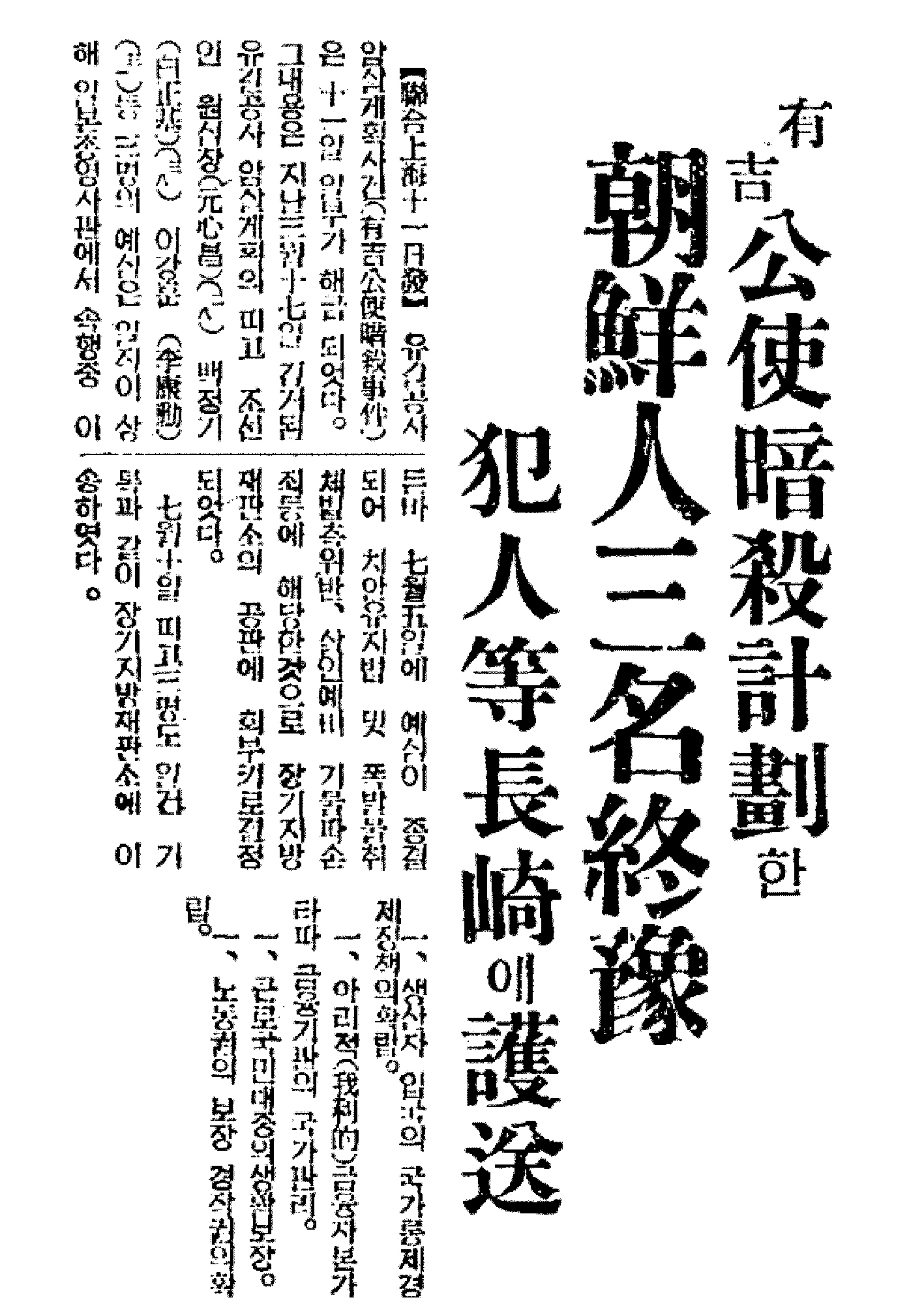 | 관련 사건 | 유길명공사 암살사건(柳吉明公使暗殺事件)/동경유학생학우회사건(東京留學生學友會事件)/상해육삼정사건(上海六三亭事件) |
