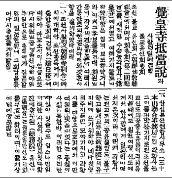 각황사 관련 기사(『동아일보』, 1923년 1월 9일)