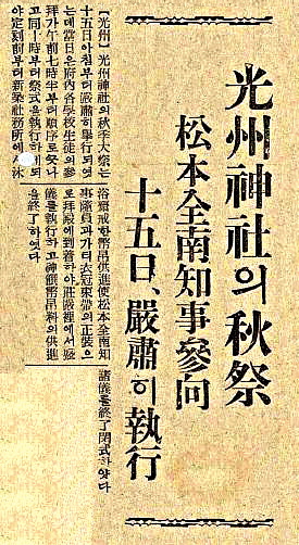 광주신사 관련기사(『매일신보』, 1936년 10월 18일)