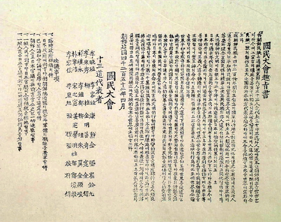 이규갑이 13도 대표로 참여한 국민대회 취지서(1919년)